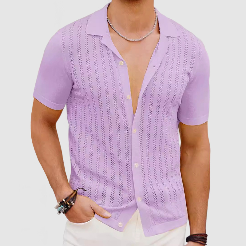 Men's Casual Knit Skeleton Short Sleeve Shirt