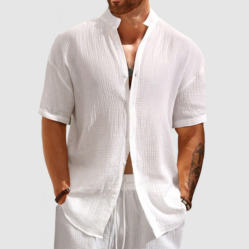 Men's round neck linen short sleeve shirt