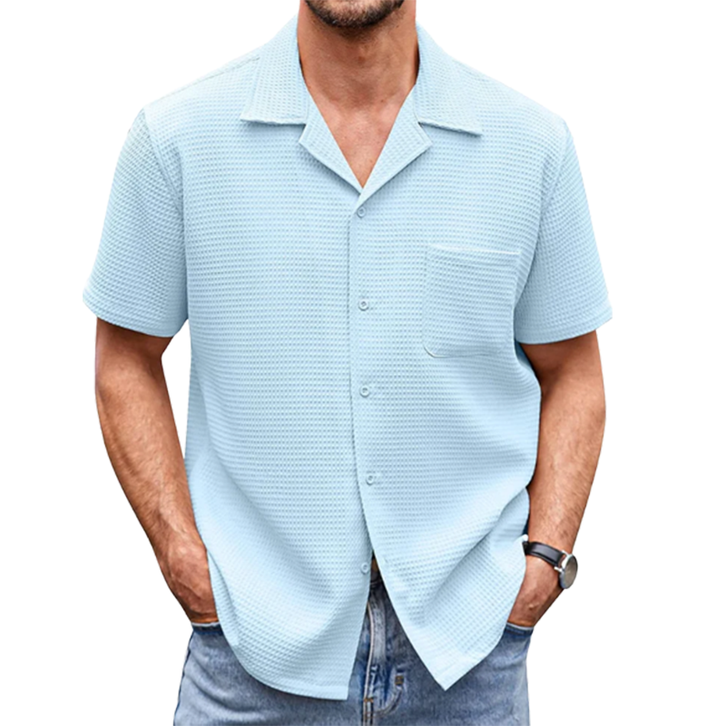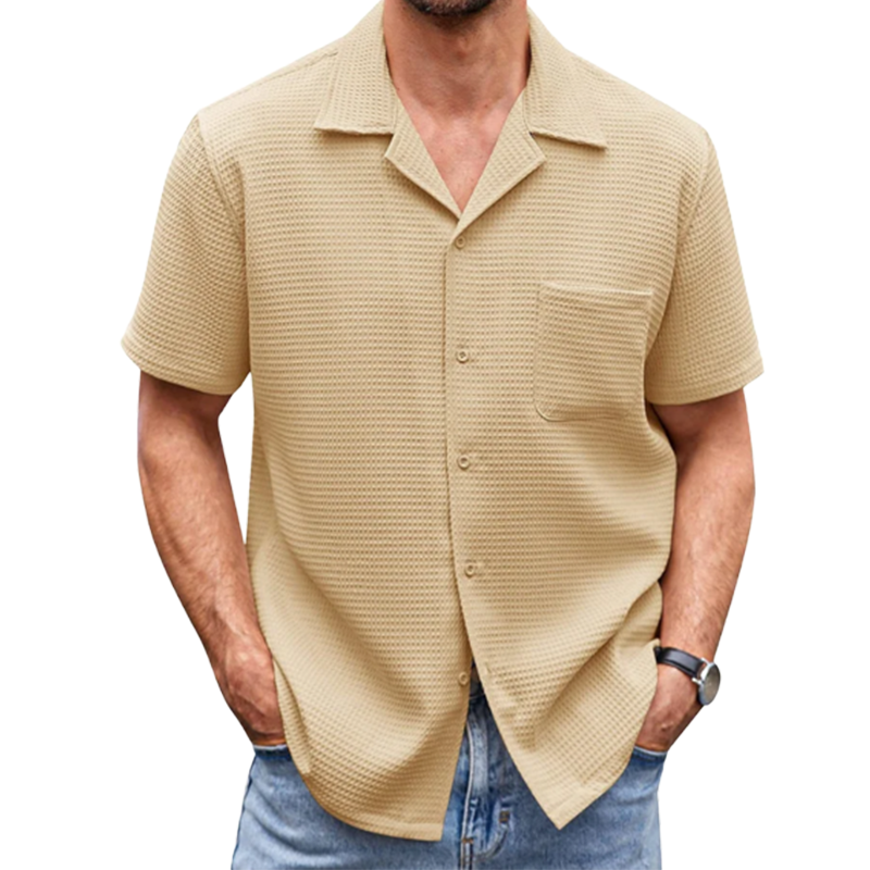Men's Cotton Linen Casual Button Down Short Sleeve Shirt