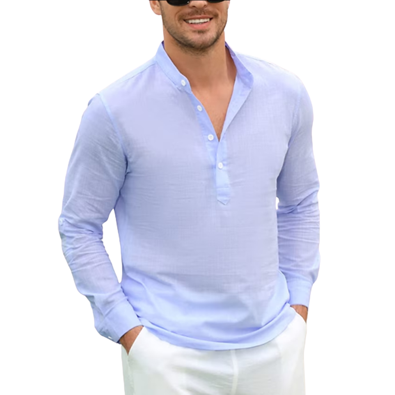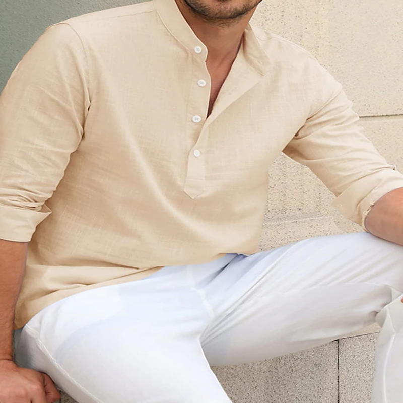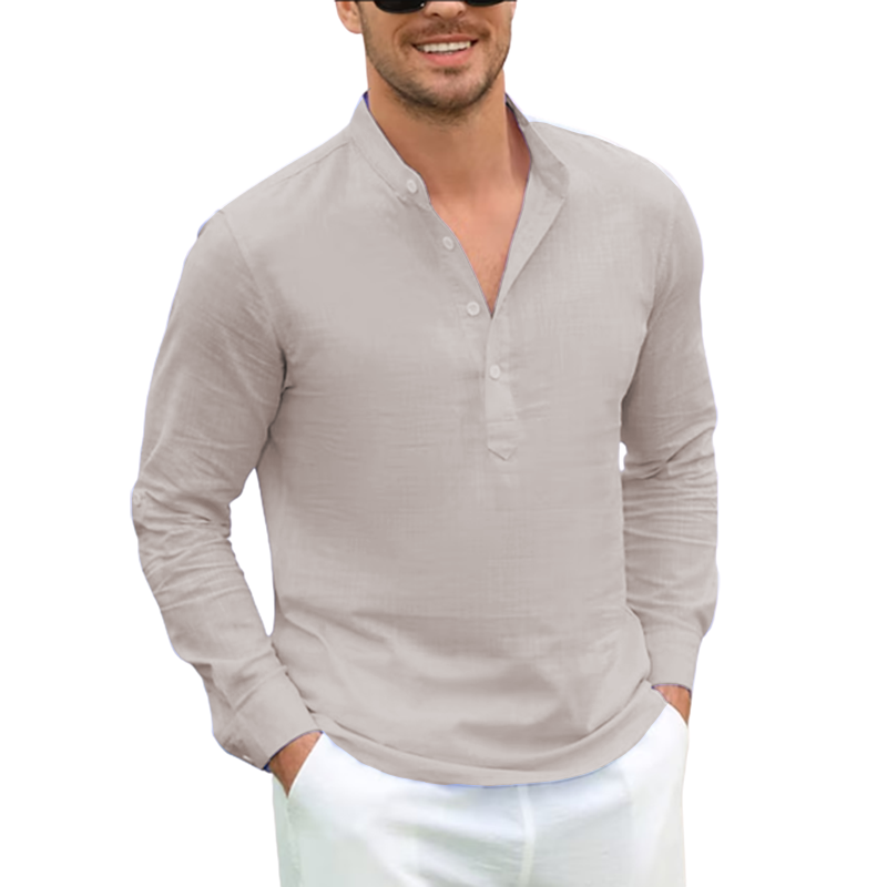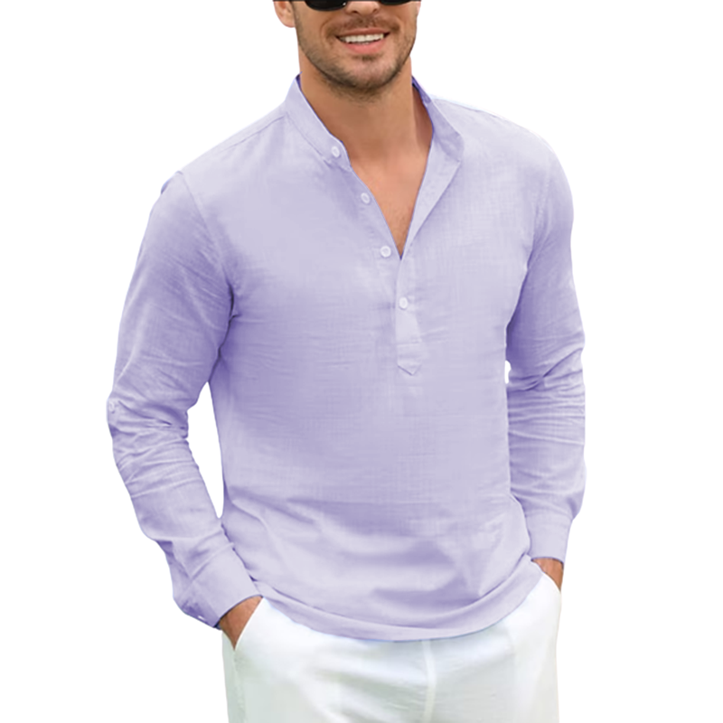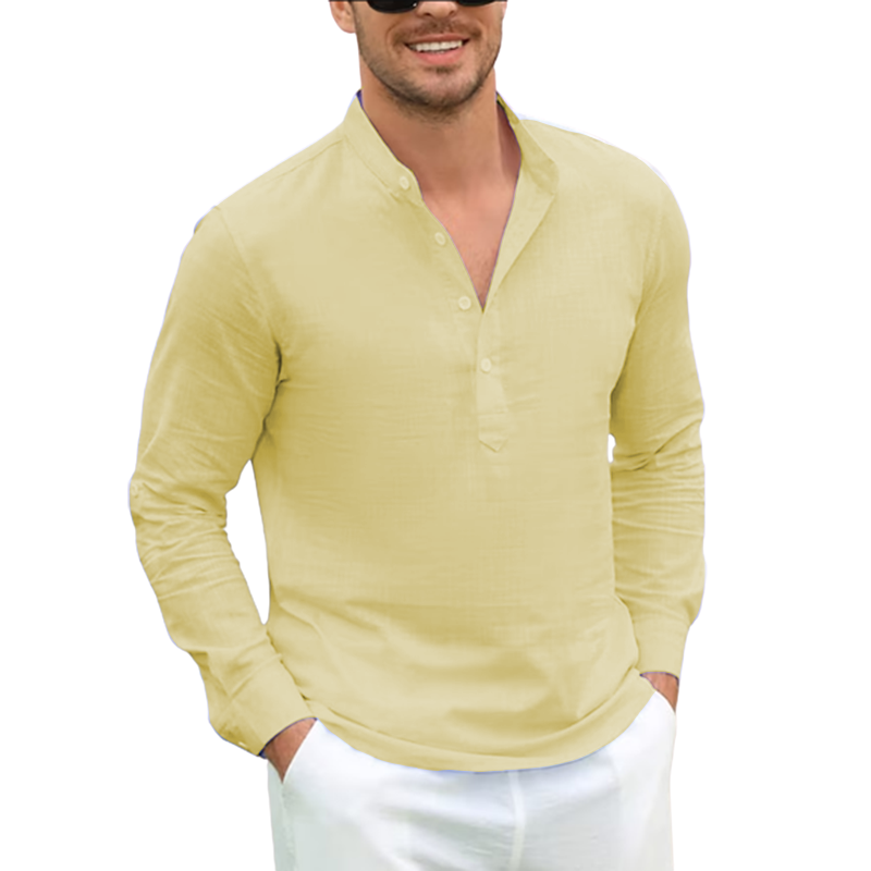 Current season men's cotton linen casual long-sleeved shirt