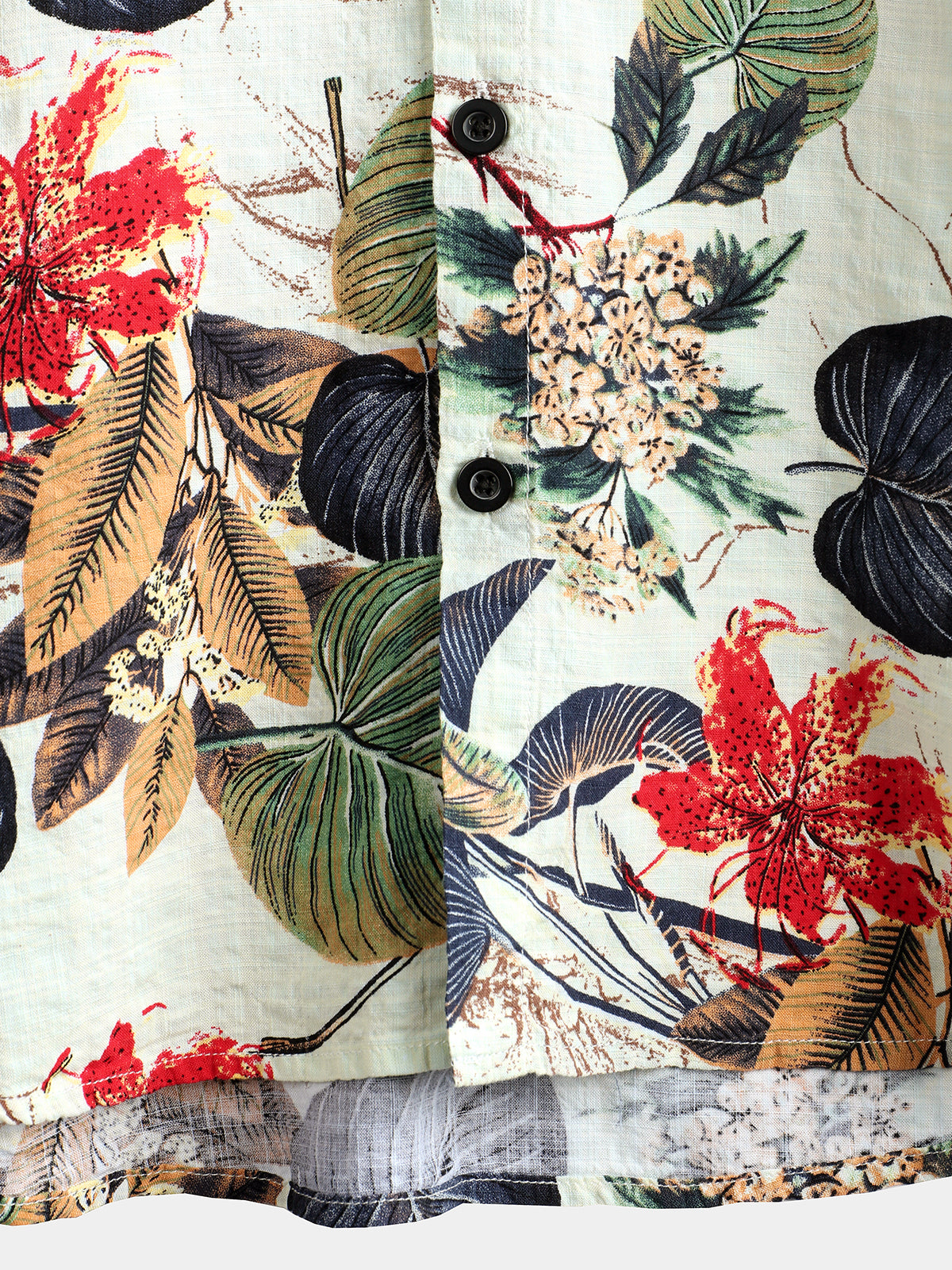 Men's Flower Cotton Tropical Floral Summer Button Up Hawaiian Shirt